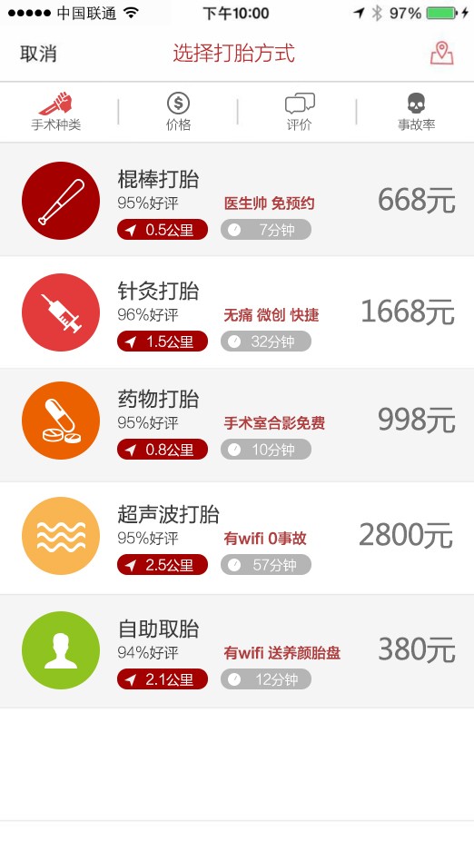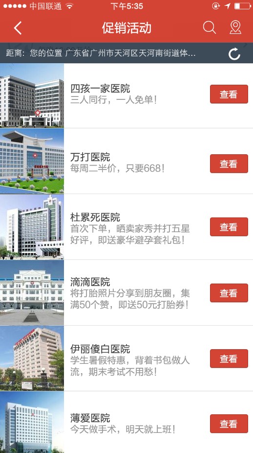 接下来,就进入到了主界面 浏览目前周边提供打胎服务的医院 ↓