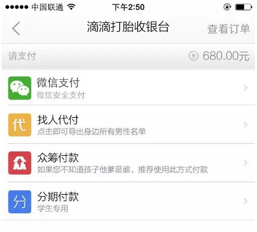 滴滴打胎APP提供多种人性化的付款方式供您选择 ↓