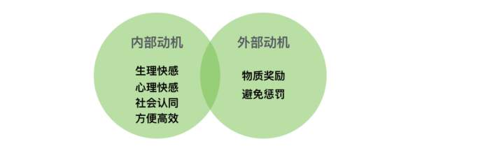 现代心理学对动机分为两种,即内在动机和外在动机。内在动机如果细分还可以分为生理快感、心理快感、社会认同、方便高效(主要归纳为这4种,后续发现可补充)。