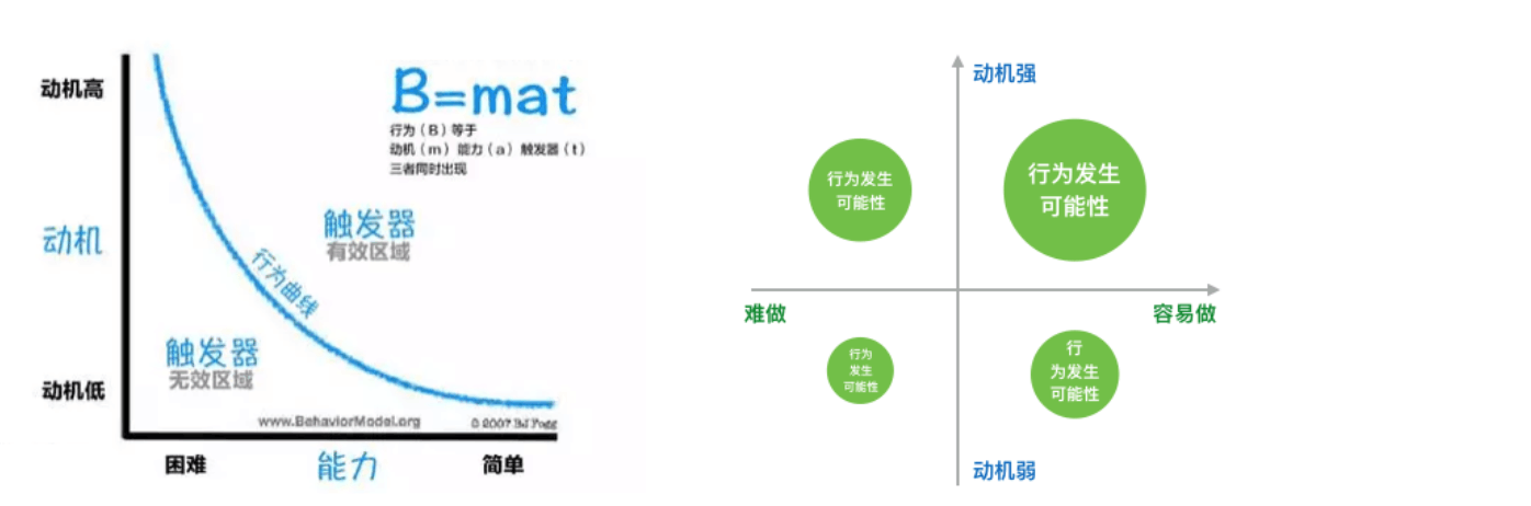 三个因素是行为发生前的必备条件,如果三者都有,也就意味着用户行动前的行为环境是完整的,那么他们是如何表现的?