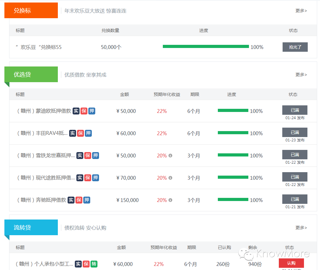 上面是一个P2P网站首页的部分截图,它分为:兑换标、优选贷、流转贷这三类理财产品展示,作为我和大多数普通用户(即:之前没有投资过,对金融相关术语等信息都不了解,算是互联网金融小白用户)看到此页面,可能都会比较好奇这三类有什么区别,因为对于我们来说:我们只清楚我们是想做投资,其它都一无所知,出于谨慎、投资之前都是要做再三考虑。至少如果我在这个网站上投资,我肯定要先弄清楚这三类的区别,然后再选择适合的投资项目——所以,它这样就相对于是提高了用户的认知难度,给用户设置了一道门槛,也许也因此把不少用户都拦在了门外。因此,我倒是建议:它首页可以隐藏这些细节,将三个分类板块合并为一个,比如:热门投资项目推荐,展示平台中高利率的投资项目,这样是不是会更好呢?!