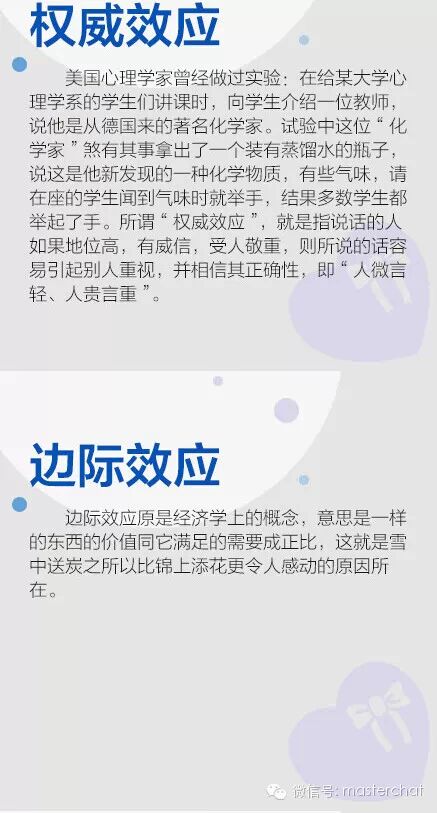 瓦拉赫效应、共生效应、刻板效应、晕轮效应、罗森塔尔效应、责任分散效应 、“酸葡萄”和“甜柠檬”心理、南风效应、得寸进尺效应、糖果效应、破窗效应……这些效应,你都知道什么意思吗?它们可是在学习、工作、生活中都可能会用到的哦!