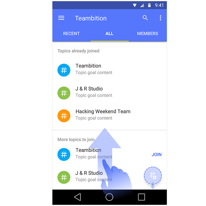 官方设计指导中着重解释了应用的导航栏、工具栏与内容各种不同的相对运动情况下应该采用的不同边界层叠模式,有纸夹式(clips)、瀑布式(waterfalls)、平移式、覆盖式等等。 Teambition 各线产品采用的主要是纸夹式