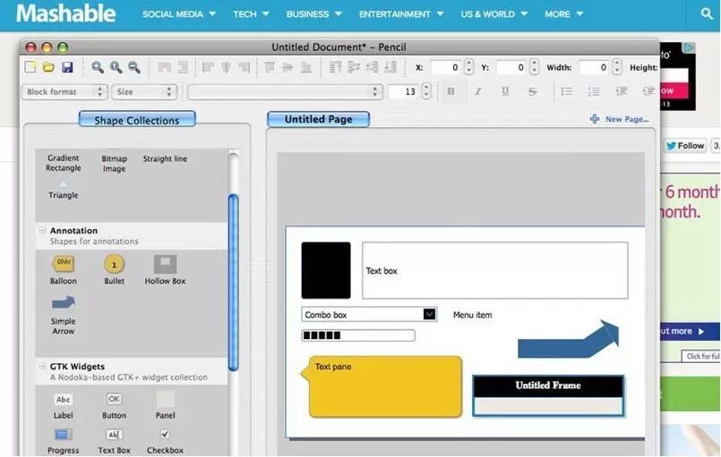 操作轻巧简单:先用手机拍下草图原型(存到POP app内);然后开始编辑图片的哪个区域(按钮)链接到什么页面,添加跳转链接热区,就可以在iPhone上给小伙伴们演示了,并且POP内嵌的交互动作 如侧滑、展开、消失等,即可满足一般的动态演示需要。不太明白?2、Pencil Project Pencil是一款开源的可以用来制作图表和GUI原型的工具,可以作为一个独立的app,也可以作为Firefox插件。内置模版可以帮你绘制桌面和移动界面中用到的各种各样的用户界面,包括流程图、UI和一般的通用图形。