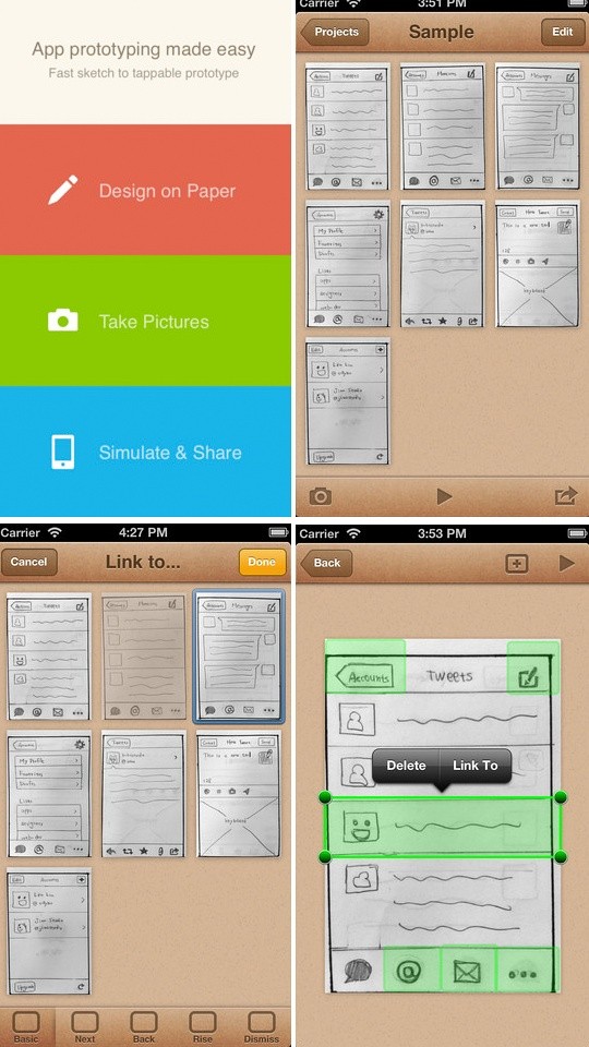 这些年,产品狗们折腾过的原型工具:1. POP(Prototyping on Paper) 算是移动App原型设计神器,很多公司在用:quora、sina、豆瓣、36氪、ifanr…