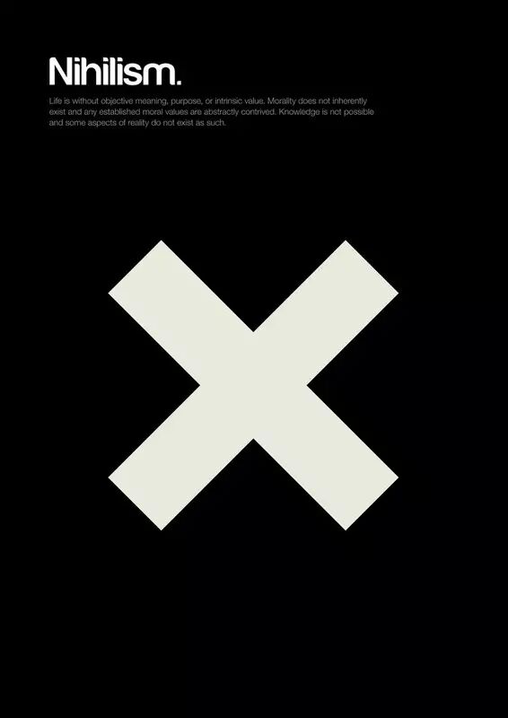 虚无主义(Nihilism) 认为生命没有客观的意义,目的或固有的价值。道德并不是先天存在,每一种被确立的道德观都是人为的,有目的性和不自然的。某些我们所看到的事实其实并不存在。它是怀疑主义的极致表现。