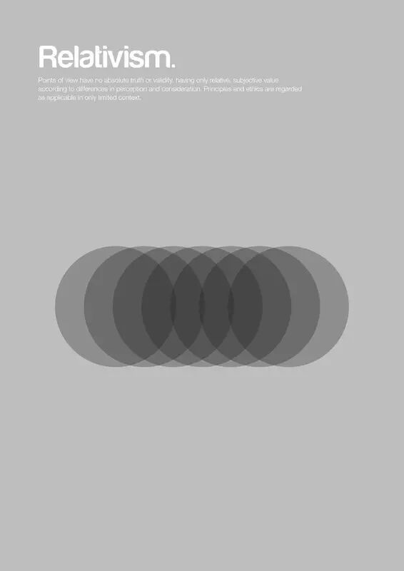 相对主义/相对论(Relativism) 观点中没有绝对真理和绝对的有效性。只有主观的价值观在不同的角度和背景之中的相对正确。原则和道德标准都只在特定的某种环境下有效。