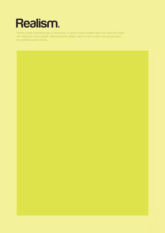 现实主义(Realism) 世界是独立客观实在的,与观测者无关。在伦理学中,道德现实主义指的是,普世价值观,道德观是客观存在的。而表象论/表象主义(Representative realism)认为人类是无法直接感知外部世界的。